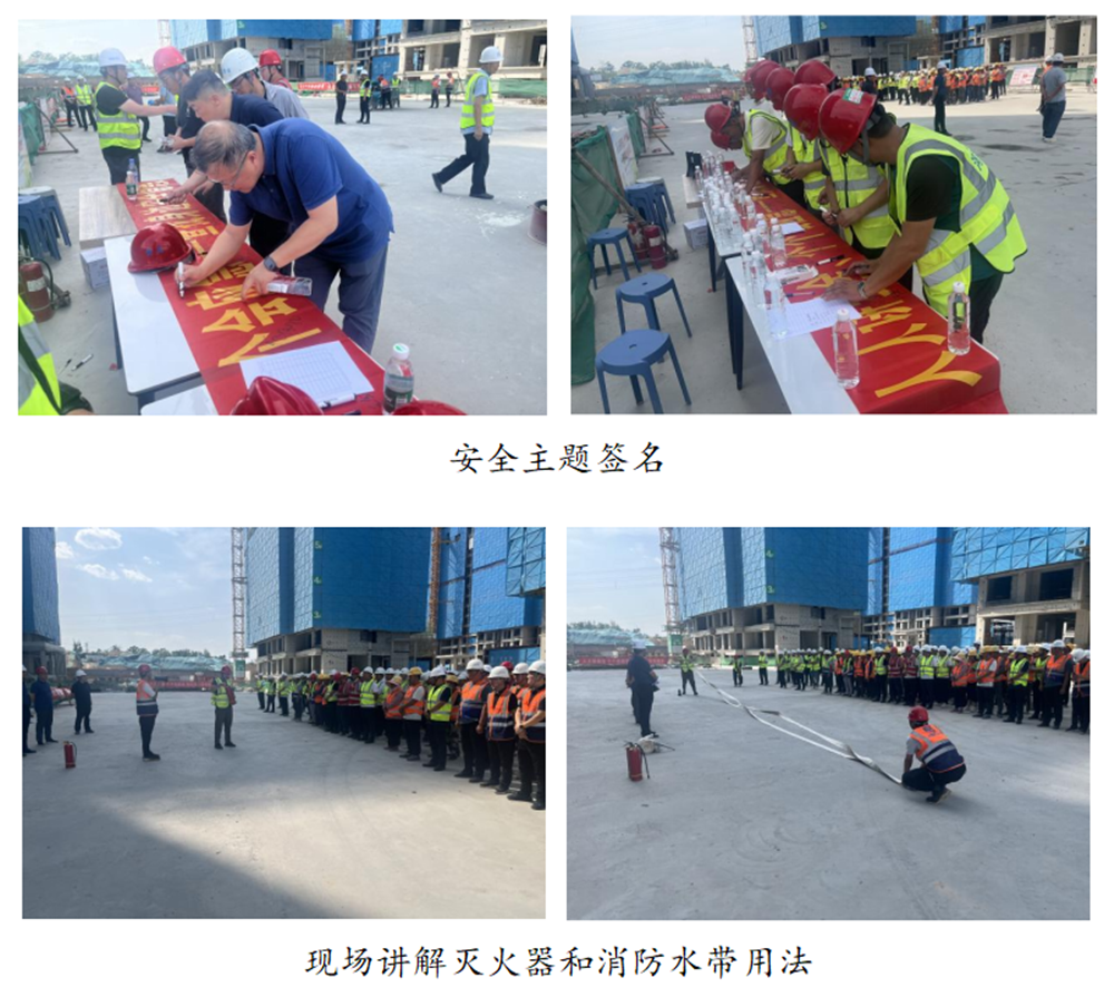 活動(dòng)期間,大家積極參與安全主題簽名和主題宣誓,講解員現場(chǎng)講解消防水帶和滅火器的用法,解答安全生產(chǎn)相關(guān)知識,并開(kāi)展了消防實(shí)戰演練。集團公司分管安全生產(chǎn)的總經(jīng)理助理黃志澎作重要講話(huà),強調了安全生產(chǎn)的重要性,要求各單位扎實(shí)做好今年防汛工作,并為一線(xiàn)工人發(fā)放防暑降溫藥品和安全知識手冊200套。