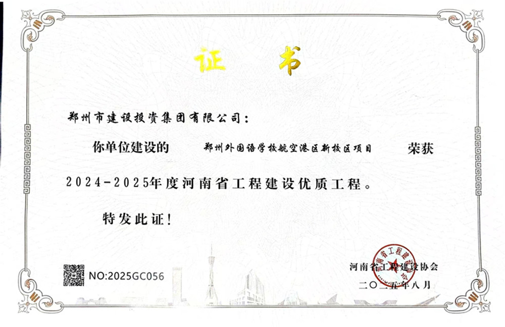 在各參建單位的共同努力下,該項目順利通過(guò)了河南省工程建設協(xié)會(huì )組織的優(yōu)質(zhì)工程評選,榮獲了2024-2025年度河南省工程建設優(yōu)質(zhì)工程。